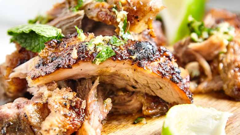 If you're eager to dig into yet another pork-centric dish, pernil should be at the top of your list. Although it is undoubtedly a key component of Cuban cuisine, there's no denying the broad reach of this delicious pig preparation. Its origins can be traced to Puerto Rico, but this satisfying meal is popular across the Caribbean and Latin America. Pork shoulder is the cut of choice, making this recipe a little less cumbersome than other pork feasts like lechon asado that typically require a whole pig.