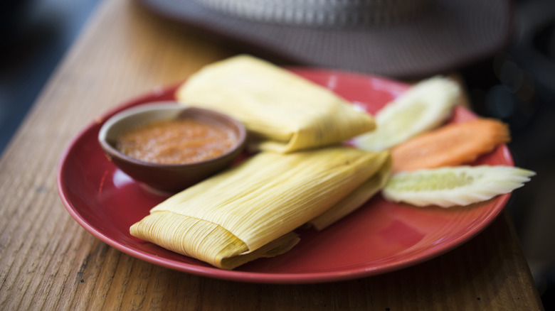 Homemade versions abound, which isn't surprising since tamales have been around for millennia. They were consumed in pre-Columbian times by the Aztecs and Mayans, and they were commonly served at festivals, which is no wonder when you consider the conveniently wrapped format. The corn-based snack is often sold as street food, easily transported and ready to unwrap when the time comes. If you've never tried a tamale, the husk is merely used for cooking and to infuse flavor — you don't want to try eating it!
