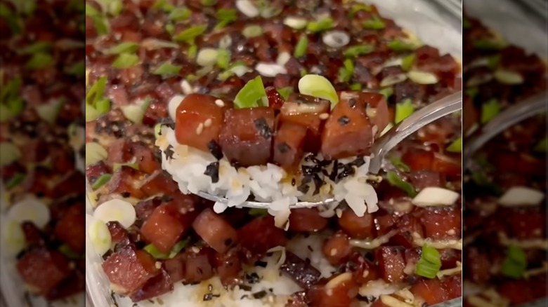 Who doesn't love a good and simple Spam musubi recipe? Compact, convenient, and delicious, each Spam musubi is satisfying and satiating. However, enjoying them is usually a one-person affair, during snack time or a quick lunch break. With a fun food hack, you can turn your favorite Spam musubi recipe into an easy, crowd-sized bake. This way, you can enjoy bites of Spam musubi with friends and loved ones, at gatherings and potlucks, or during a casual game night.