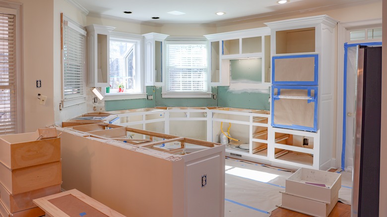 This may seem counterintuitive after all of the non-paint-friendly wood types we've listed, but you also want to stay away from painting non-wood cabinets, too. Kitchen cabinets may come in materials such as laminate or vinyl, and paint doesn't stick to those surfaces. If you do have a more tight-grained wood like walnut or beech, and you've really got your heart set on keeping your cabinets but changing their color, you can pull off a paint job — but be prepared to follow all of the steps properly. Invest in high-quality paint; remove your doors to paint them; remember to sand, clean, and prime them for the best possible surface with the strongest chance of paint lasting; and let them totally dry before reinstalling them.