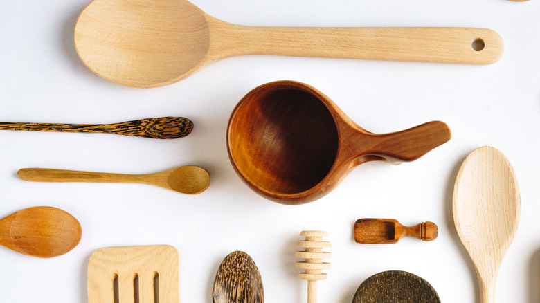 Most dish racks have a cutlery compartment, which opens up even more organizing and access potential. You could use that cubbyhole container for storing a handful of basic eating utensils, but an even more useful trick is dedicating it to practical cooking tools. How many times have you scrambled to find the right spatula or wooden spoon when frying eggs, making gravy or pancakes, or stir-frying veggies? If the most-used ones are routinely stored in that dish-rack compartment, you'll know exactly where to reach them in the nick of time. You never want to lay wooden spoons flat when drying, as it could cause cracking or unwanted expansion.