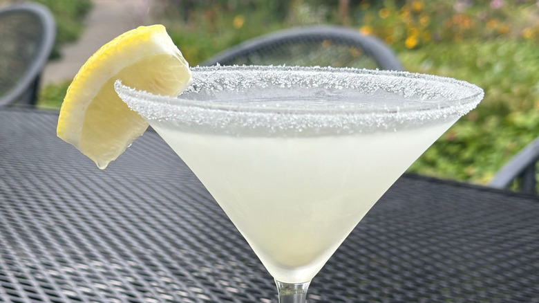 The lemon drop martini would also make a terrific cocktail for stretching with a splash of bubbly brut champagne. With this reimagined assembly, the drink would become a sweeter, lemony, less botanical take on the French 75 — not unlike a grown-up glass of lemonade with powerful potency lurking just below the surface. Garnish this refreshing champagne-spiked lemon drop martini variation with a lemon wheel sail and a skewer of fresh raspberries.