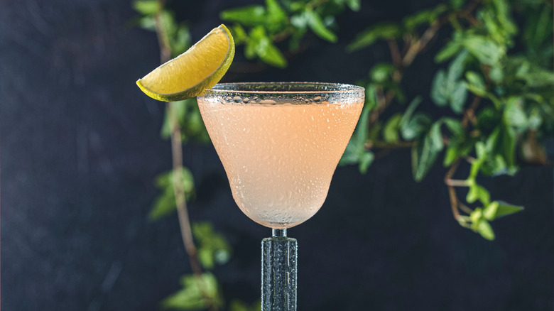 The Pegu Club comprises gin, triple sec, and lime juice, finished with a dash of both Angostura and orange bitters. It's a simple yet dark take on the classic sour cocktail formula, which typically never sees bitters as an ingredient and usually includes simple syrup. Like a French 75, the Pegu Club is gin-based, citrus-forward, and not too sweet. To assemble, the ingredients get shaken over ice, strained into a Nick and Nora glass, and topped with a lime wedge or lime zest twist. If the spirit moves you, the Pegu Club would make a fantastic candidate for lengthening with a slug of fizzy champagne, French 75-style. Just swap the Nick & Nora glass for an ice-filled highball glass and pour away.