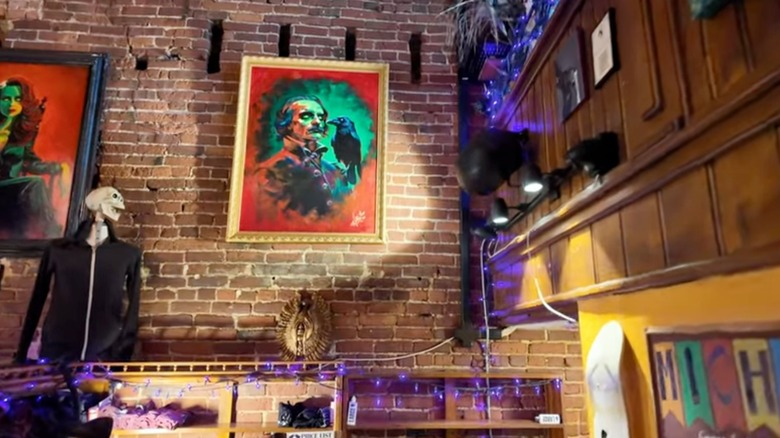 If you're a fan of coffee and Edgar Allen Poe — or just unique places in general — then you might consider adding the Raven Café to your list of unique coffee shops you never thought existed and need to visit. Located in a historical district in Port Huron, Michigan, this eclectic coffeehouse takes its name from one of Poe's most beloved poems, "The Raven." Fittingly, the visage of a regal raven is the first thing visitors spy when approaching this much-beloved meeting place. Perched on the cafe's outdoor signage, the large, coal black bird keeps vigil over the impressive dark wood facade decorating the shop.