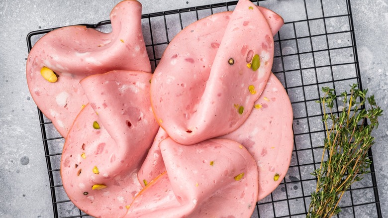 Mortadella's meatiness is also bolstered by earthy pistachios, which break up the meat in a way Wallace loves. "The spices are great, and the pistachios are just awesome for some texture," she says. Fresh Italian flavors like basil pesto, mozzarella, or sun-dried tomatoes work well with the meat in sandwiches. If you want to fry it like Wallace suggested, though, Anthony Bourdain's easy five-ingredient mortadella sandwich pairs the caramelized meat with creamy provolone and Dijon mustard for a bold, hearty bite.
