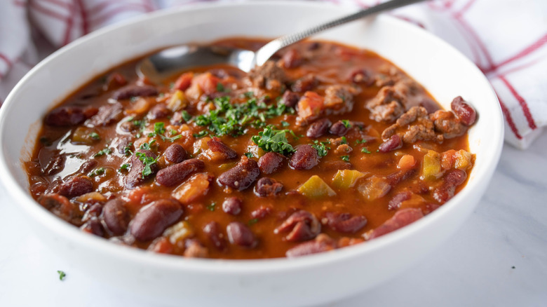 The recipe from Chasen's notably includes both beef and pork, chopped green peppers, and a hearty helping of dried pinto beans. The meat was sauteed using an entire stick of butter and the beans needed to be soaked overnight prior to cooking. Though Chasen's shuttered in 1995, its claim to fame of serving Elizabeth Taylor's favorite chili still endures. With a little time and patience, you can make your own version of the dish and dine like a star.