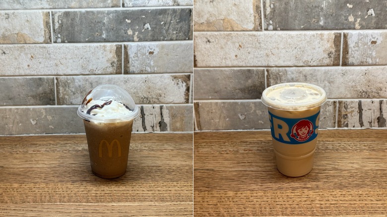 Stepping away from the plain coffee flavors, we have the caramel frappé from McDonald's and the caramel Frosty Cream Cold Brew from Wendy's. Both are made with caramel flavors and a coffee base, yet they have entirely different flavors.