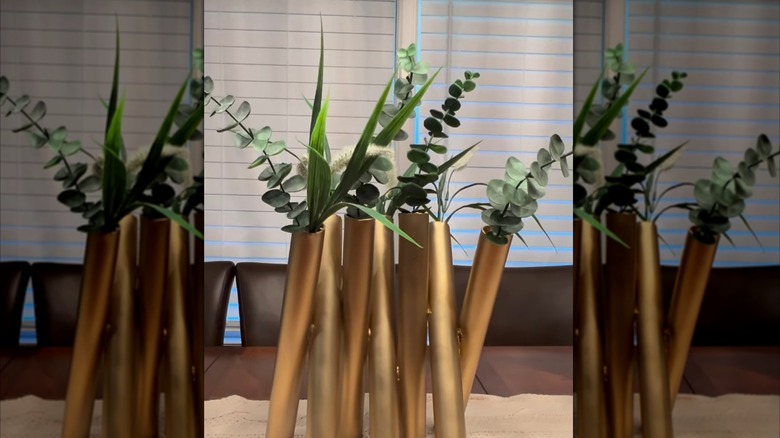Longer, thinner pieces of PVC pipes can be displayed in horizontal rows to serve as towel racks in cleaning areas, while thicker pieces can be stacked vertically to hold wine bottles. Larger PVC rings can also be set into drawers to group small jars of spices or be used on tables to create unique tablescapes with flowers and seasonal decor. When a new holiday rolls around and your dinner party calls for a different theme, simply repaint the PVC pieces, and you'll have a fresh set of decorative items for your festive affairs.