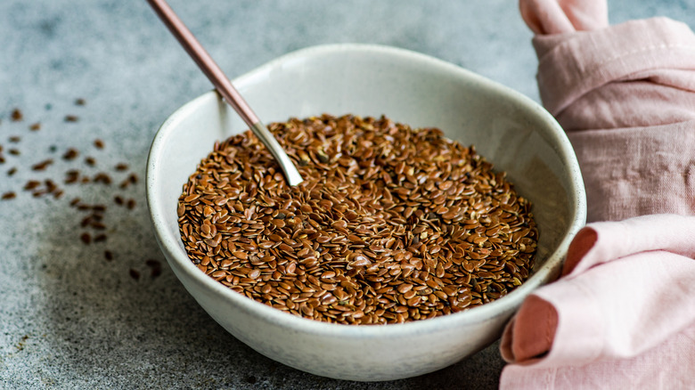 Ground flaxseeds are more easily digested, however, so they're the best option if you're prioritizing fiber. While you can grind your own seeds, it's more convenient to buy them ready ground as flax meal (you can easily source flax meal on Amazon, like this Manitoba brand). But unlike whole seeds, ground flax is highly absorbent. To keep the right ratio of dry to wet ingredients if using flax meal, you'll need to swap out some of the flour and add extra water, or use a recipe that already includes flax meal.