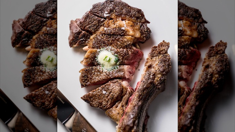 As far as the steaks, customers also say there's no way to make a mistake. The porterhouse is lauded for its intense flavor, and that's the porterhouse pictured. If it looks huge, that's because it is — it's a 24-ounce steak. Seafood lovers appreciate the 8-ounce filet mignon with an entire lobster, and the 20-ounce ribeye has a ton of fans, too. That's not even touching on the American wagyu and the Japanese Miyazaki wagyu, and while this is a pricey dinner, it's almost overwhelmingly and nearly unanimously said to be worth every penny.