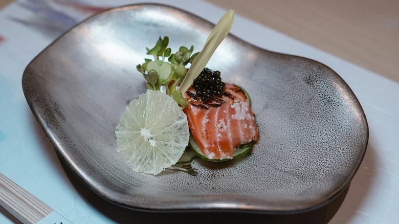 Due to the care and attention that goes into creating a high-end, artistic kaiseki experience, the food should be enjoyed and savored slowly and mindfully. This is why, at Kaiseki Sanga in Las Vegas, around two hours is usually set aside for each multi-course tasting menu. All diners are served the same menu simultaneously, during two different sittings. Because of this fixed time dining, it's recommended to get your seat booked in advance. Sittings usually take place at 5:30 p.m. and 8:30 pm. But don't be tempted to book a table if you're not sure about your availability — no shows will be charged a hefty $150 per head.