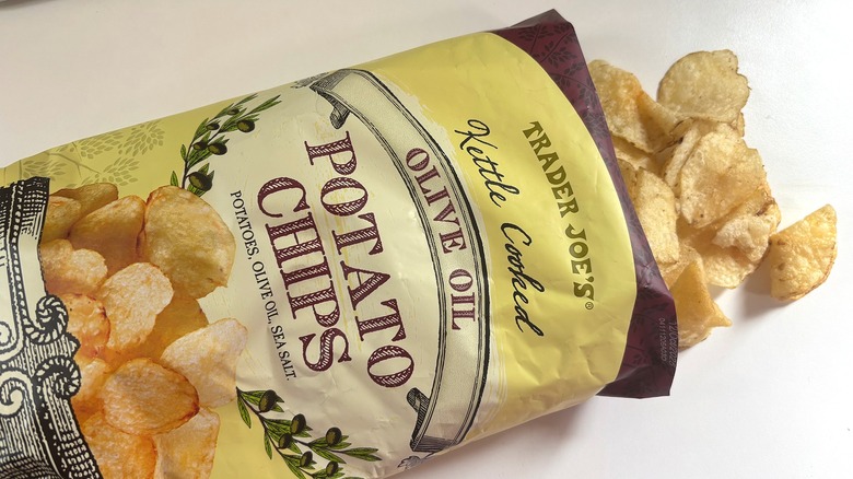 Being me, I had to include some potato chips on the list. The snack is undeniably my absolute favorite, and it's tantamount to sin to pass them up in my book. Trader Joe's Kettle Cooked Olive Oil Potato Chips are no exception to this rule. I love these, and I have for a while — the flavor of olive oil offers savory appeal, and I especially like that these don't cut up my mouth as much as thicker-cut kettle chips often do (they still give that satisfying crunch, though). These also don't taste oily like some other kettle-cooked chips I've had, and even though you can taste the olive oil, the chips are neutral enough to pair with lots of different dips.