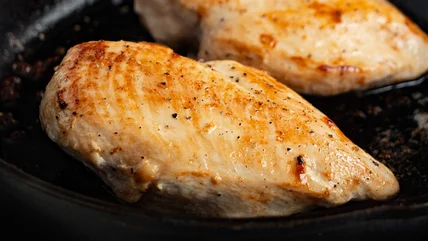 To ensure a successful sear, we advise cooking the chicken over medium-high heat, turning it only when it releases easily from the pan. Frequently flipping the meat will only keep the chicken from developing a crisp and golden exterior. After searing for about five to seven minutes on either side, the perfectly browned chicken can be pulled from the pan and any crusty and oily bits clinging to the skillet can be transformed into a pan sauce (use this cherry balsamic recipe as a blueprint!) while waiting for the meat to rest.