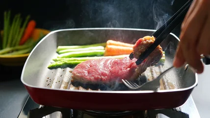 Non-stick pans are made by coating a metal base with PTFE, which is Teflon. When deciding if non-stick pans are worth investing in, consider that, over time, the slippery, chemical coating can wear off, making the pan more prone to causing stuck foods. Non-stick pans also don't retain enough heat to properly sear a steak. Chef Kook explained, "Non-stick just doesn't get hot enough, and you'll miss out on that crisp crust that makes a steak truly satisfying." What does the professional chef and "Iron Chef" contestant recommend instead? "I always use cast iron," Kook says. "Cast Iron holds heat better and allows you to get a really deep, hard sear that locks in moisture and flavor."