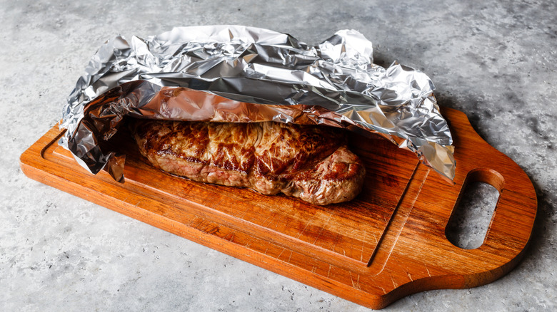 This isn't a mistake you'll find chef Sufyan Marikkar guilty of. It's important to rest the meat, he explains, because "this pause allows the juices to redistribute throughout the meat fibers rather than escaping the moment you slice into it." In addition to retaining those crucial juices that are packing in all the flavor, Marikkar notes, "Resting also firms up the meat slightly, making it easier to slice thinly and cleanly, which enhances presentation and texture." Once you have wised up on why it is essential to let meat rest after cooking it, you'll be wondering what the ideal time is to let it rest uninterrupted. As a rule of thumb, you can allow it to rest for 10-20 minutes depending on the size of the meat you are working with.