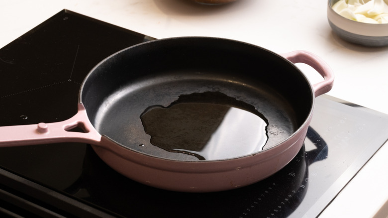 - Heat a wok or a wide, shallow pan containing vegetable oil to a medium-high heat.