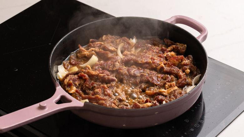 If you have some extra beef bulgogi, try serving it up in Korean-style tacos, using any remaining scallions, bean sprouts, and a sprinkling of cilantro as garnish. As an additional option, a little kimchi will provide some tang and spice. Alternatively, the beef can be warmed up and enjoyed in the form of loaded fries (Korean poutine, maybe?), or simply used to stuff a baguette for a delicious bulgogi sandwich — or, even better, a beef bulgogi grilled cheese.
