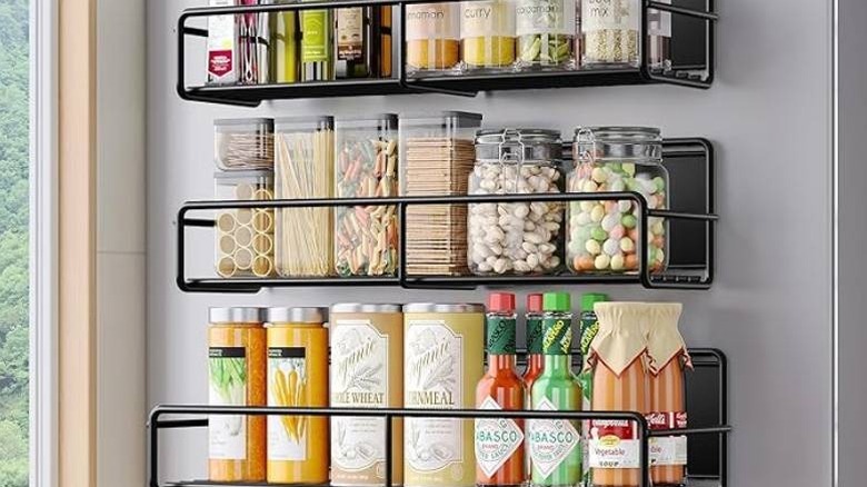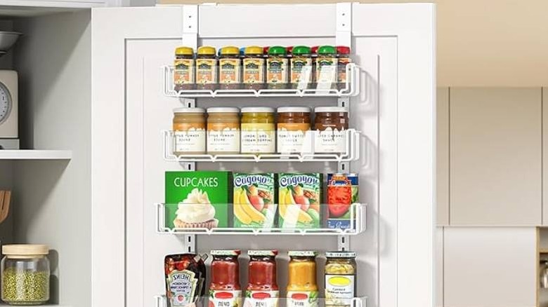 Renters can rest easy with a slew of adhesive options, which makes challenging installation procedures a thing of the past. To bring some order to an otherwise anarchic land of jumbled pot lids, you may want to try MIXISAV's adhesive cabinet organizer. Then again, perhaps you'd like a simpler approach for maximizing cabinet doors. If so, there are also over-the-door organizers at your disposal. These can be slung onto any door with hooks to cut through the clutter of a messy pantry. You can opt for something like this Delamu over-the-door pantry organizer to get your spices in formation.
