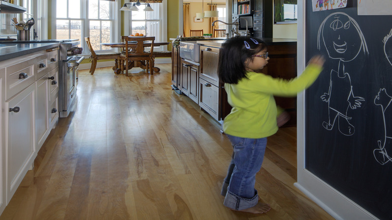 The refrigerator makes for a handy backdrop for magnetic shelves, but why stop there? You can infuse some whimsy into your kitchen via chalkboard magnetic pain, creating a multi-purpose wall for messages, pictures, and any souvenir magnets from your travels.