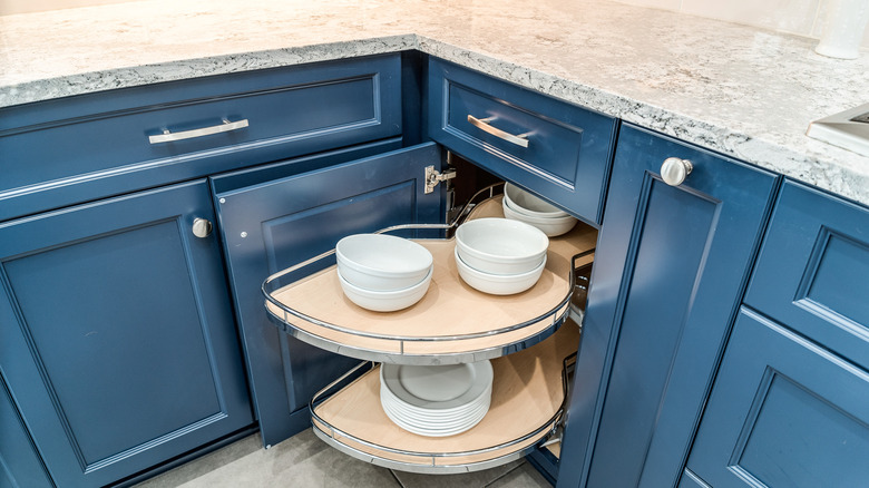 Few storage crimes tend to prove as costly as ignoring the space afforded by corner cabinets. In fact, wasting this space — like a blind corner where two cabinets meet at a 90-degree angle — is a sign that it's time for a kitchen remodel. With that in mind, if you're redesigning your kitchen, you may want to have rotating or pull-out shelves installed. This will allow for easy access to a storage space you may have otherwise ignored.