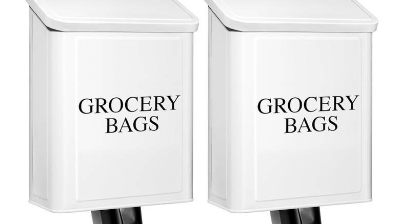 Think of these organizers as a tissue dispenser but for your grocery bags. With that in mind, there's a range of choices, such as a CFGBFDGH fabric-based option, which can be slung on any spare hook in the kitchen. This Calindiana farmhouse-style tin organizer, meanwhile, can be attached to the side of a refrigerator. If you're looking to make the most of your wall space in a tiny kitchen, though, you may prefer a hybrid-type option, like this Vorshape dispenser. This allows you to store individual plastic grocery bags at the top and standard garbage bag rolls at the bottom (among other possibilities).