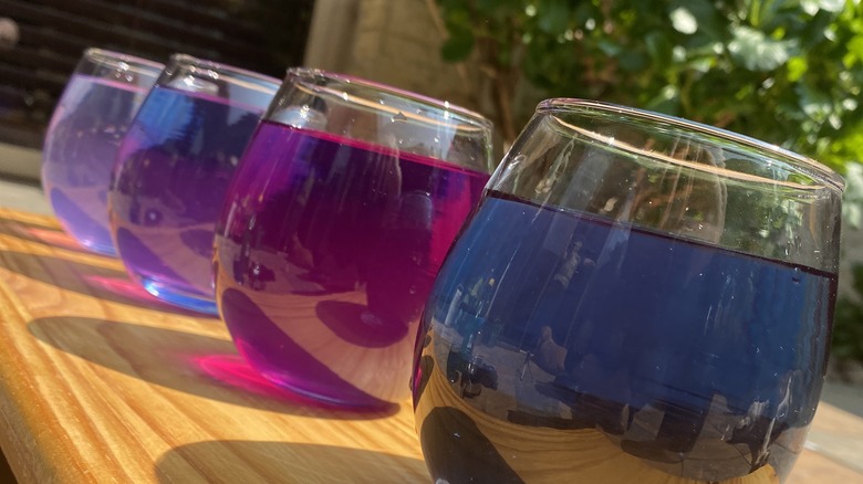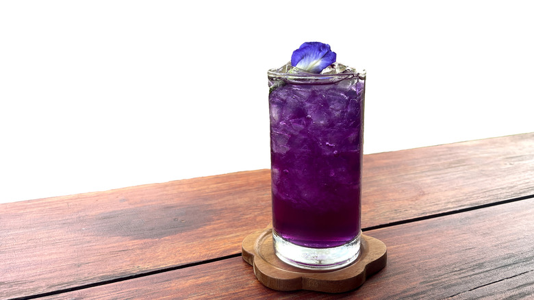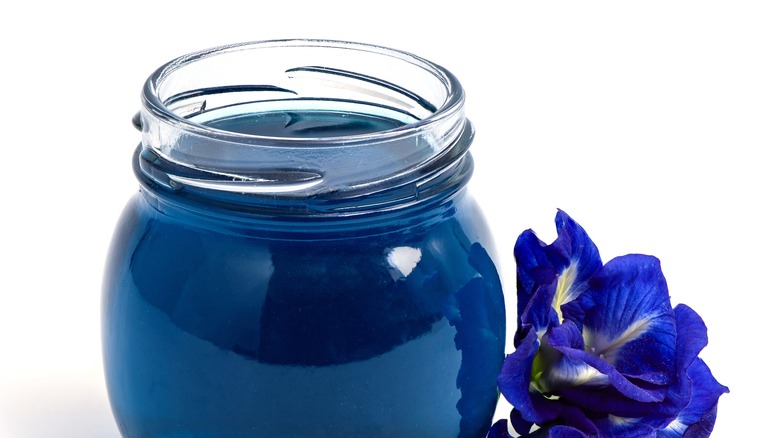 Whether being used as an aromatic compound or to impart colors, butterfly pea flowers have a vivid impact on food. Fresh and dried versions of these flowers are used as garnish and time-released coloring agent, respectively, but it's the extract of the flower that is most often employed in cooking, baking, and food production. At home, the process of extracting color from butterfly pea flowers can be as straightforward as steeping them in hot water. (Essentially, you're making tea.) You can soak your flowers in various volumes of water to impact the concentration, too. Some methods call for maceration of the flower. Some might encourage the use of an alcohol solution, as is done in occasional commercial settings. Mix it with sugar, and you have a syrup. Results depend on the recipe, and they vary.