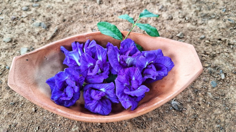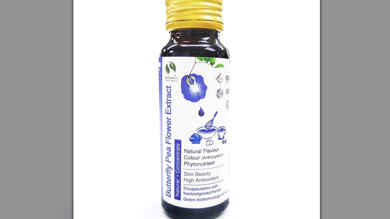 As an intended replacement for petrochemical dyes, butterfly pea flower is naturally being touted as a far more healthful way to color foods. This is a perception that goes much further back in history than the FDA's decision to expand an already approved coloring agent. For centuries, ayurvedic medicine has utilized butterfly pea flower to treat numerous ailments, including, "indigestion, constipation, arthritis, skin diseases, liver and intestinal problems," according to the Journal of Food Science Technology. These benefits are potentially linked to and supported by the existence of the aforementioned ternatin anthocyanins among other antioxidants.