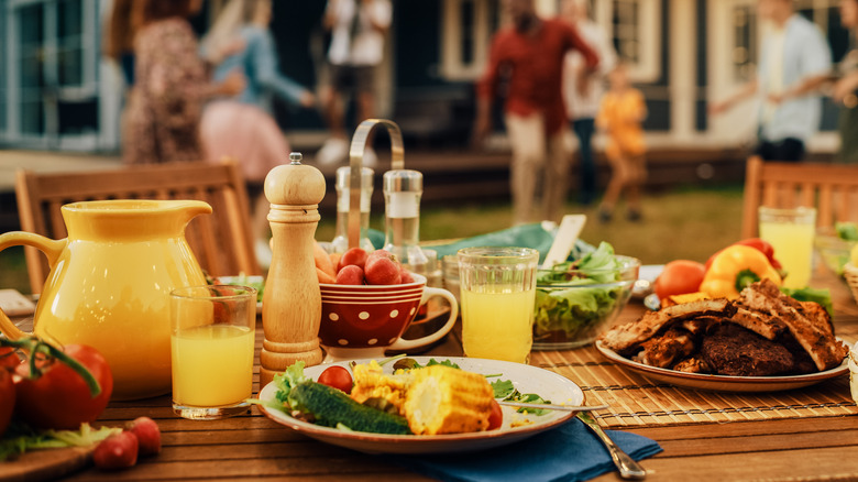 If you're worried that asking guests to bring their own meat is a betrayal of your hosting duties, you can always make the event more like a barbecue potluck. Ask guests to bring their favorite barbecue sides, like grilled Mexican street corn, grilled cabbage and mango slaw, or pasta salad. They can also bring appetizers or desserts, such as barbecue chicken sliders, Key lime cake, or this vintage fruit salad that deserves a summer comeback.