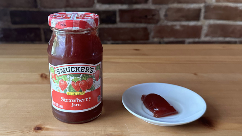 There's nothing like spreading some strawberry jam onto a piece of just-toasted bread, already slicked with a pat of salted butter. It offers your toast (or whatever else you're serving it with) a lovely sweetness and fruitiness, of course, as well as a nice pop of acidity — if you're working with a good strawberry jam, that is. I personally prefer making my own jam. Even though it takes some time and effort, it reaps a delicious reward. But let's face it: Not everyone has the time or the skills to make their own strawberry jam from scratch on a regular basis.