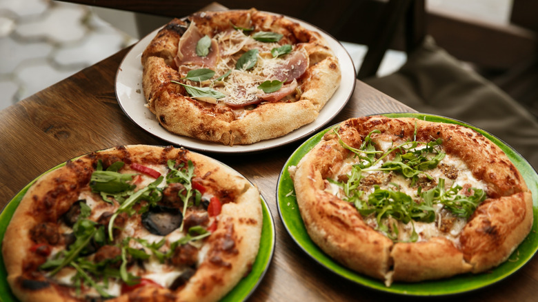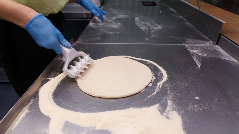 Another way to avoid the crust puffing up is by adding some holes to the pizza. "Docking a pizza will also help with this as it degases the dough, not allowing it to puff up in the middle," Gemignani says. "Docking is a term when you roll over your dough and put mini holes in it, so it degases." To do this, you can use a fork or a pizza docker (or dough docker), one of the 20 kitchen tools that will help you make a perfect pizza.