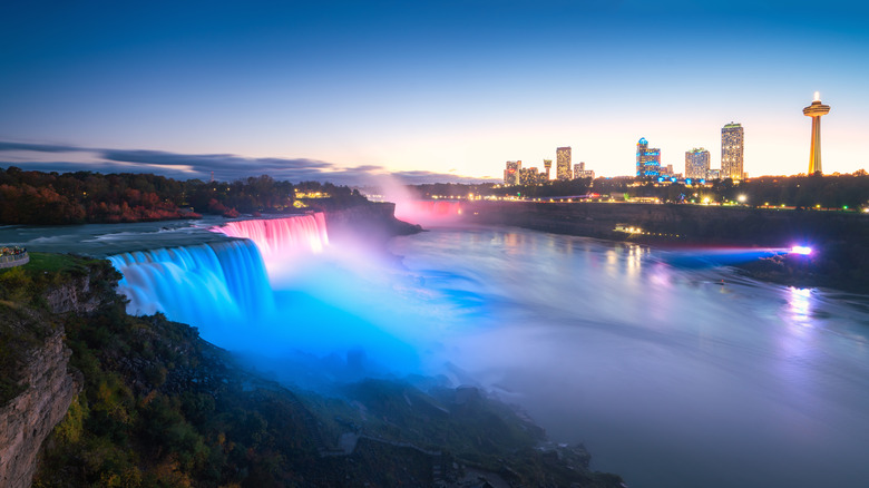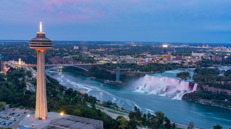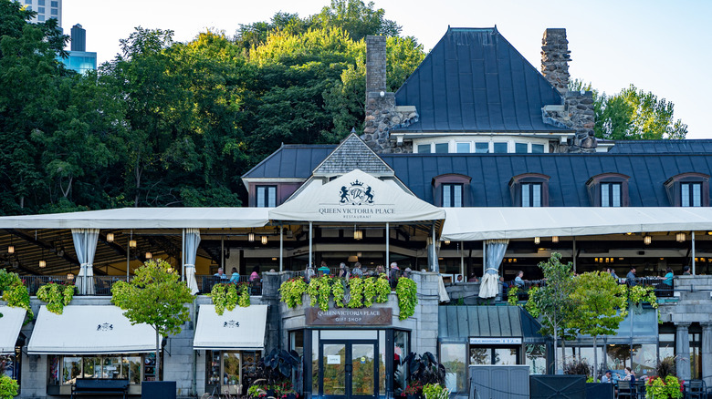 Perched on the rocky precipice alongside Niagara Falls, Table Rock House Restaurant is "the closest you can dine to the Canadian Horseshoe Falls," according to Niagara Parks. Indeed, the restaurant boasts entire walls of glass to frame in the majestic views. From bank to bank, the Niagara River covers a span of over 2,000 feet before dropping 188 feet into the Lower Niagara River. While an awesome sight, the thundering roar of the water isn't the only thing you'll experience at this Niagara Falls restaurant with a view. Table Rock House Restaurant sources ingredients locally, ensuring that the establishment's food and drink offerings reflect the seasons, making it one of the few farm-to-table restaurants on this list.