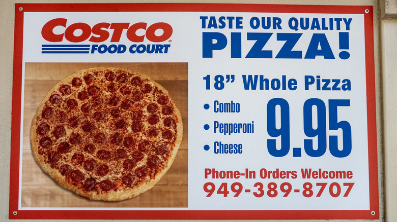 Many Costco shoppers look forward to stopping by the food court for a bite to eat while doing their shopping. It has remained popular since the late 1980s, when a single hot dog cart turned into Costco's iconic food court. If you're trying to keep costs down during your shopping trip, you might find yourself looking for the best deal on its menu so you can save a few bucks. While the most affordable item on Costco's food court menu is the beloved hot dog combo — which includes a hot dog and a drink for just $1.50 — it might not be the most economical if you're feeding your whole family. Buying a whole Costco pizza actually offers you the most bang for your buck when comparing the per-serving costs of different popular menu items.