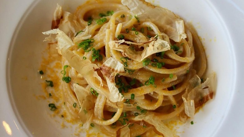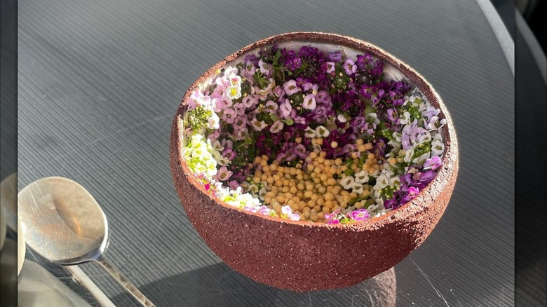 Caruso's serves two main menus — land and ocean-themed — while the plant-based menu is available on request. The fish is caught by local fishers from the ocean that stretches out directly in front of the restaurant, and the produce is sourced from the restaurant's vegetable garden. Even sea urchins in the uni dish that's featured in the fifth course of the eight-course ocean-centered tasting menu are harvested by a local diver named Stephanie. That's why, besides the one Michelin Star awarded for its cooking, Caruso's was also honored with a Michelin Green Star for its dedication to a sustainable approach.