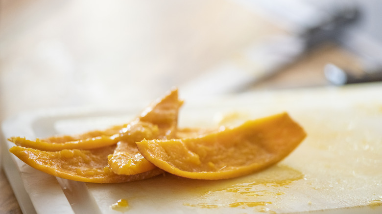 You may have your go-to mango peeling method, and it has likely served you well in the past. However, it's still a good idea to dabble in some new and improved ways to peel your mangoes, as some of these trendy, internet-famous hacks are fairly brilliant. Some of the tried and true methods are still holding up, as long as your knife work is good and you're working with sharp blades. Choosing a mango peeling hack is also dependent on the type of cut you want to end up with. Diced? Sliced? Mashed? Whole? Give them all a try, combine them, and at the end of the day, stick to the one you have the most success with. Happy peeling!