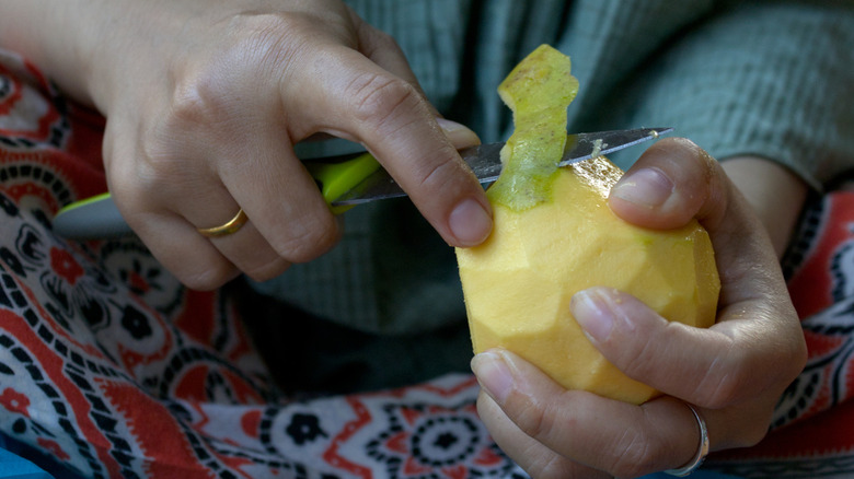 Don't make your job of peeling a mango any harder than it needs to be. Did you know that you can start hacking mango peeling before you grab a knife? The type of mango and its ripeness both play a role in the ease of peeling it, so set yourself up for success early by selecting just the right fruit. If you're hoping to slice and dice that bad boy today, take your time at the grocery store to pick the best fresh fruit that's ripe and ready to eat.