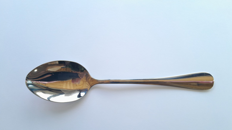 Take the curved side of a metal spoon and gently rub the skin of the mango, covering the entire surface area. By massaging the mango, you are disrupting the fibers that hold the skin to the flesh. Use a circular motion, take your time, and don't worry about any tearing. After all, you'll want the skin to come off in the end. Use this spoon method if you're trying to preserve the whole fruit. It pairs well with the hack of cutting the fruit before peeling it, which utilizes finger peeling. This will be much easier to accomplish if the fibrous barrier has been broken down. While this isn't always the cleanest hack, as the massaging brings out the juices, it is certainly satisfying to be able to peel a mango with your bare hands. Massaging it only takes a minute or two, and leaves you with an ultra juicy fruit to enjoy.