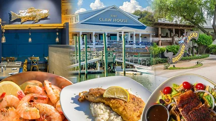 If you're looking for a dinner spot that isn't stuffy but isn't ultra-casual, look no further than Gulfstream Cafe. The interior of the restaurant and the surrounding beach are equally jaw-droppingly gorgeous. The building sits above a section of vast, marshy coastline while the dining room's exposed wood beams and floor-to-ceiling, west-facing windows let you experience an epic sunset in a warm environment.