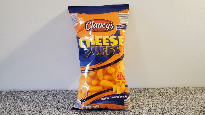 Clancy's Cheese Puffs left a lot to be desired. I was actually excited to give these a try after looking at the bag. You can see a lot of cheese on the puffs — so much so that it was actually visibly stuck to the inside of the bag. However, that excitement faded after I held the bag to my nose. Despite how cheesy they looked, I didn't smell anything. And, sadly, that theme continued after taking a bite. Where was the cheese? It's clearly labeled on the bag, you can see it sticking to the puffs, and there's evidence of it on your fingertips, but you can barely taste it at all.
