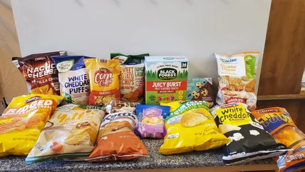To get a more accurate representation of the flavor of each item, we each took a sip of our drinks between bites. We also tried to spread out some of the more similar flavors, such as the Cheese Puffs, White Cheddar Puffs, and Nacho Cheese Tortilla Chips. This way, the different flavors wouldn't mix in our mouths as much and give us potentially conflicting information.