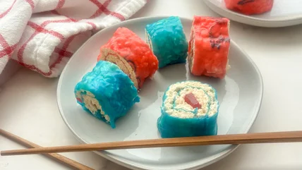 Sushi is great as a savory meal, but with some creativity, it can work as a sweet treat, too. Developer Miriam Hahn brings us this fun and simple candy sushi recipe to add a bright and colorful touch to the dessert table. It uses Fruit Roll-Ups as the nori, puffed rice cereal treats as the sushi rice, and chewy candy for the filling. This playful spin on sushi brings out the fun at birthday parties, play dates, or a normal afternoon. It doesn't involve the oven and is just right for little hands to get creative in the kitchen.