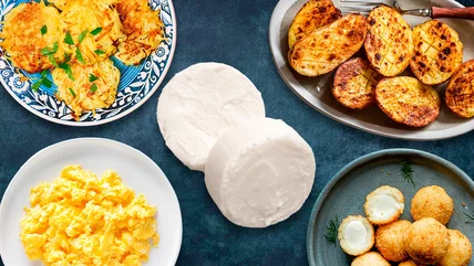 This is another idea that is incredibly versatile. Whip goat cheese and cream cheese together, add other types of cheeses or yogurt, experiment with different types of herbs and spices, and when it comes to other toppings, the sky's the limit. Layer on some smoked salmon, lox, or trout, add a drizzle of that last little bit of leftover marinara or curry sauce, or serve alongside a tomato or root veg-based soup. Latkes just might become a staple, and they absolutely should.