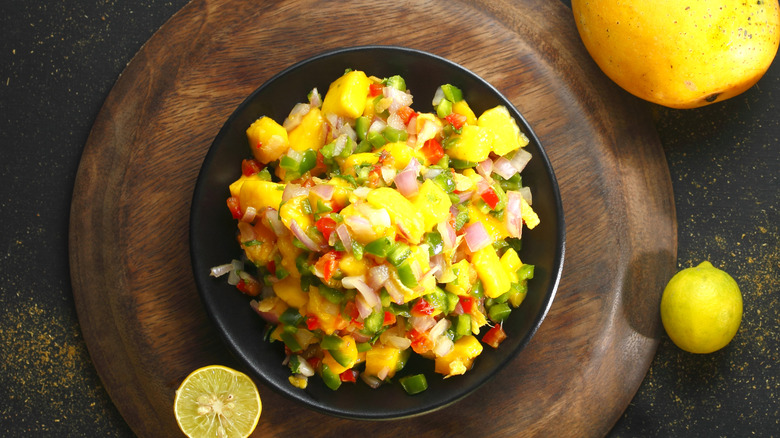 There's a rainbow of colors from ingredients like tomatoes, mango, scallions, red onion, and even various colored bell peppers to make even the blandest fish shine. Everything is diced but fresh, so there's a crisp juiciness that's unparalleled. We recommend a smaller dice as larger mango chunks may be hard to chew or fall out of your sandwich entirely. We love mango salsa with cod, but you can do any white fish, such as halibut or tilapia.