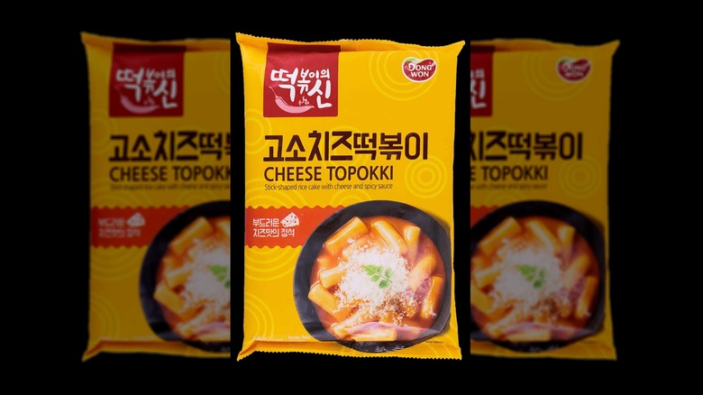 Freshly made topokki at your favorite Korean restaurant will always be an undeniable treat and one that's worth going out of your way for, but sometimes, you can't spend the money and time going out to eat. However, that doesn't mean you can't enjoy a quick topokki meal at home or need to be a pro at cooking the dish from scratch. Enter Dongwon's Cheese Topokki, which is available at H Mart. It's easy to make this prepared meal, even if you have minimal cooking skills or equipment. The stick-shaped rice cakes have a special soft, chewy texture that makes topokki so delicious. There is also a rich, spicy sauce that gives the dish both moisture and most of its flavor.