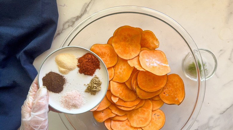 What are some other seasoning options for the sweet potato chips?