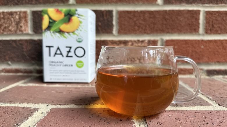 Tazo's Organic Peachy Green blend offers a medium amount of caffeine and a generous amount of flavor, making it one of my favorite green teas on the market. This product also has organic black tea, helping safeguard it from tasting too grassy. With a combination of organic natural cucumber flavor and organic natural peach flavor, it might even win over the hearts of folks who don't generally enjoy green tea. It should only be steeped for three minutes, as per the package's instructions, and I recommend sticking strictly to that limit to avoid a bitter cuppa.