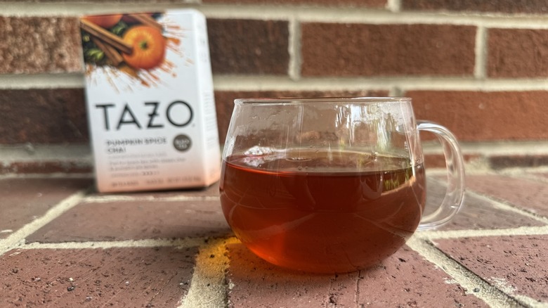 Tazo's Pumpkin Spice Chai, with its smoothly balanced spices and lovely autumnal aroma, was a welcome addition to my tea cabinet. It includes black tea, ginger, cloves, cinnamon, cardamom, black pepper, licorice root, and natural flavors. Despite being a black tea, it was not very bitter, and I even preferred the flavors of this product more when prepared without milk. Even so, it could be used to imitate Starbucks' tea lattes – more specifically, of course, its Pumpkin Spice Latte.
