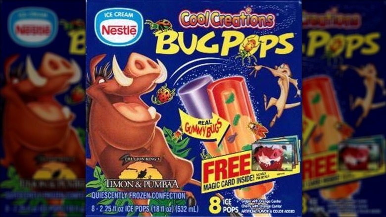 There was a lot of bug-themed stuff out there in the '90s, so it shouldn't come as a surprise that bug-shaped popsicles were once a thing. Cleverly, they were called Bug Pops, and they were an absolute summertime staple for so many '90s babies out there. This was another product that was ultimately just a marketing scheme, featuring popular characters from "The Lion King." Part of the appeal was the fact that there were bug-shaped gummies inside the layered popsicles, and finding them within the frozen treat was most of the fun. However, because those gummies had been frozen, it made for a strange textural experience that really seemed like it was more about novelty than actual deliciousness.
