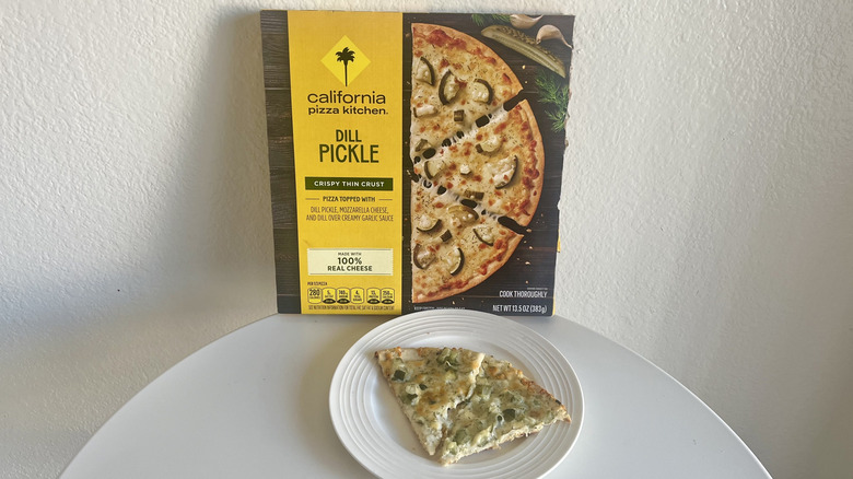 It doesn't have the snap of a fresh pickle, but it still offers a bit of texture variance. Overall, the execution was pretty good, but the thin crust leaves a little to be desired. I also felt like the pizza was missing some added depth, like an extra punch of vinegar powder to offer more tartness. However, you may think differently — as the writer who reviewed the CPK dill pickle pizza really enjoyed it, and the crust, to boot. This absolutely tasted better than the BBQ chicken, but it was not too memorable (aside from the pickle aspect).