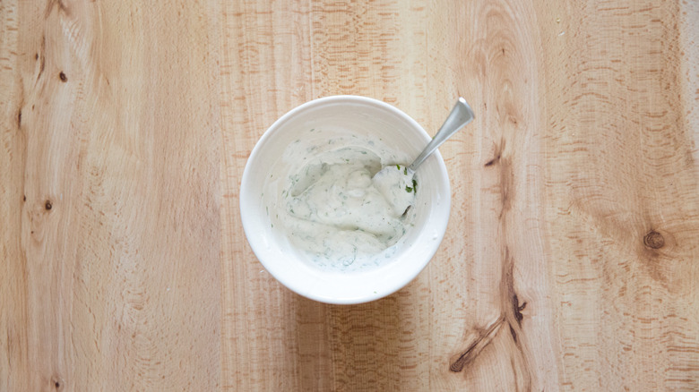- Place the yogurt, mint, lemon, salt, and pepper in a bowl and stir well to mix. Taste and adjust for salt and pepper. Set aside in the refrigerator.