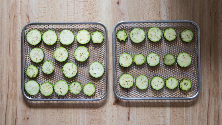 Zucchini isn't the only vegetable you can use to make tasty chips in the air fryer. In fact, the list of options is quite long. Zucchini, which is considered a summer squash, is one of the most popular types of squash. You can also make chips with butternut squash, which is a winter squash. It requires more prep work to remove the peel, but the texture works very well. For a softer chip similar to zucchini, consider making chips from eggplant. Choose Japanese eggplant because it has a thinner shape that's ideal for chips.
